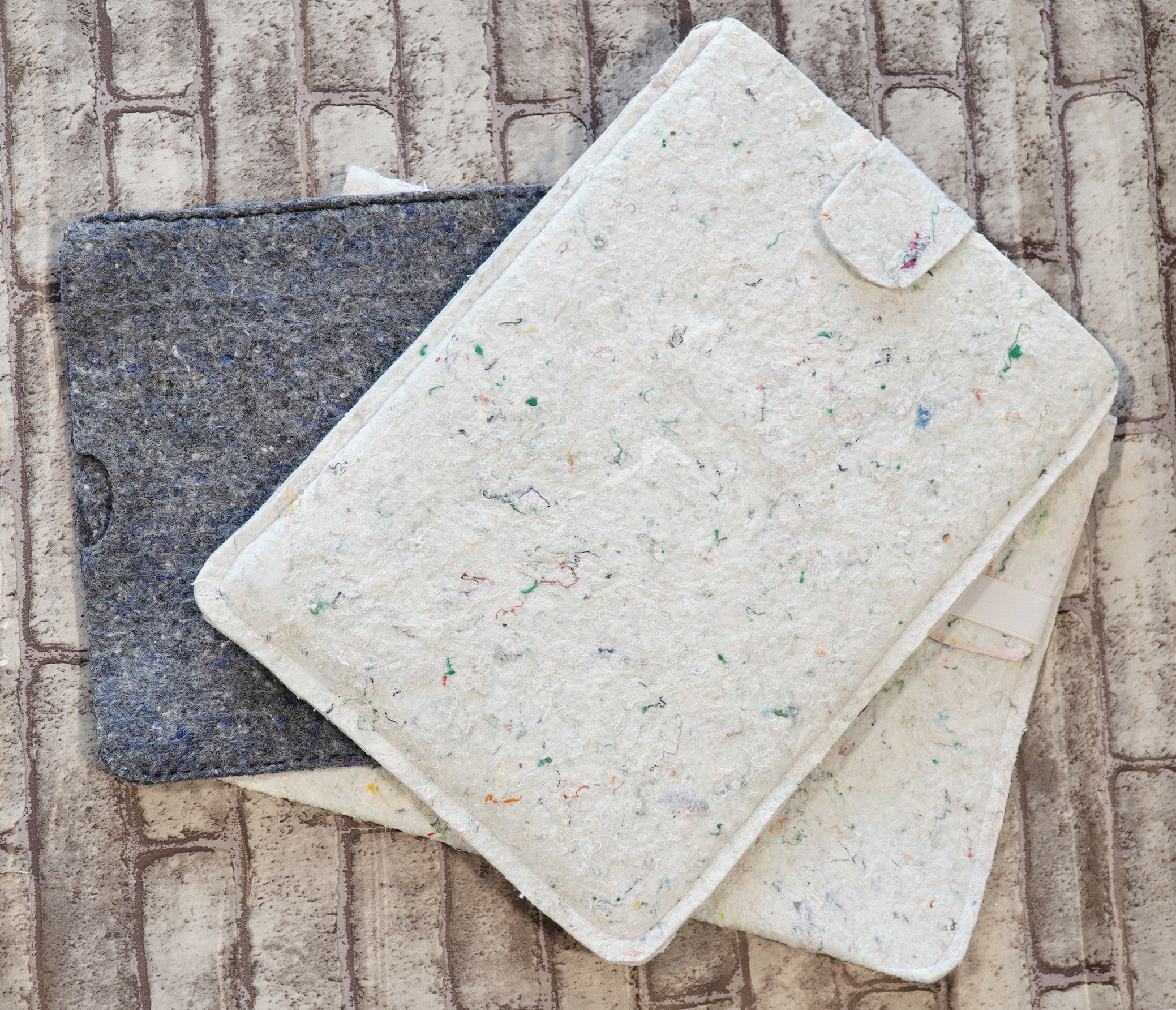 Velcro tab fastened Laptop sleeve made Felt from Recycled Textile.